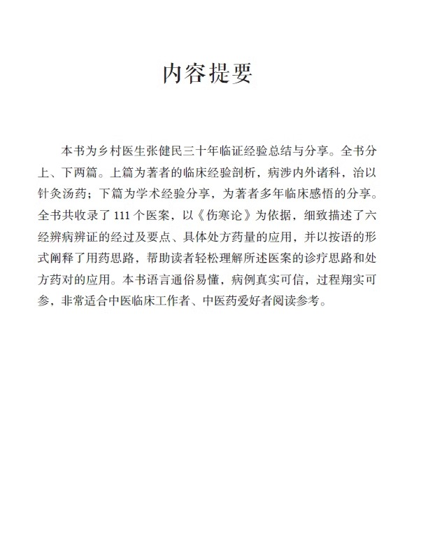张健民 乡村中医30年经方临证实录 六经辨病辨证 经过及要点处方药量应用用药思路 9787523600931 悬壶杂记 中国科学技术出版 二