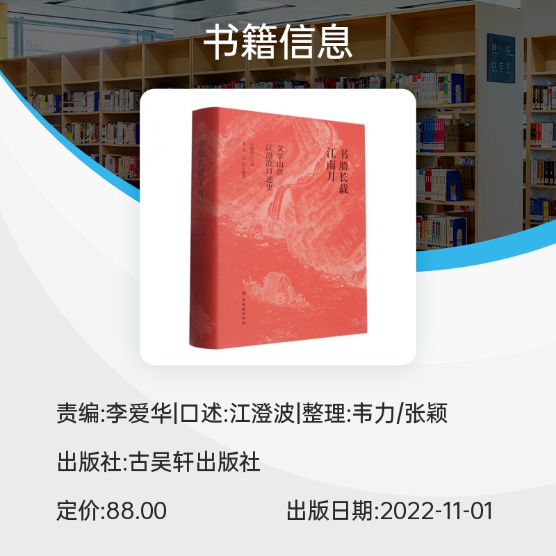 如实记录近百年来江南古旧书业风貌和旧书市场 古吴轩出版 社 书船长载江南月 书籍 精 正版 博库网 文学山房江澄波口述史