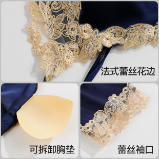 性感五件套丝绸带胸垫睡裙春秋家居服套装 冰丝睡衣女2023新款 夏款
