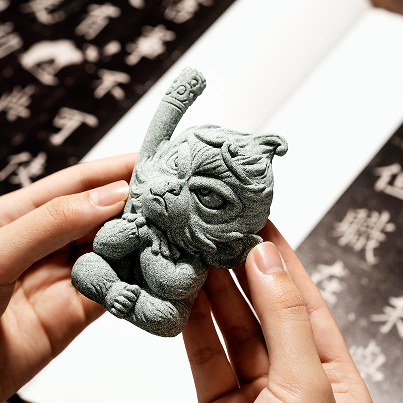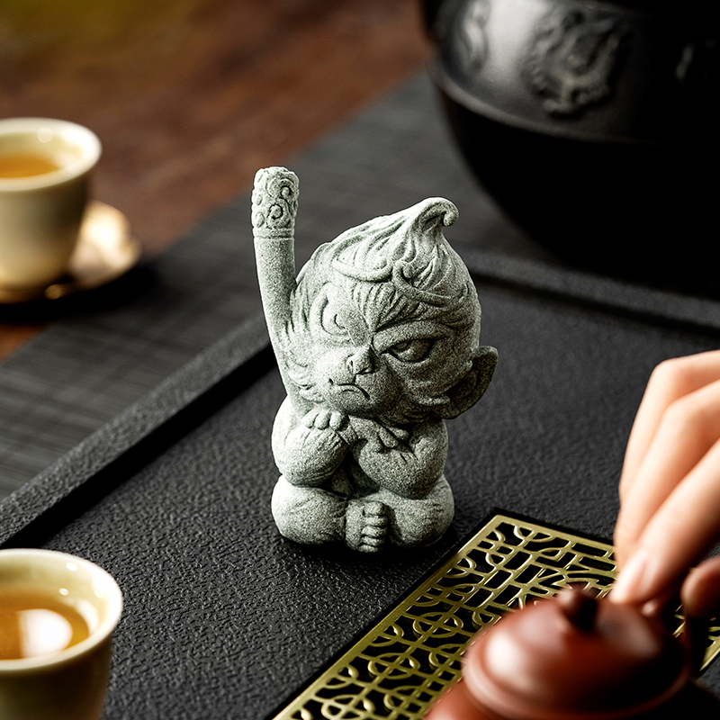 国潮青砂石齐天大圣茶宠摆件居家桌面动物造景装 饰器物可养茶玩