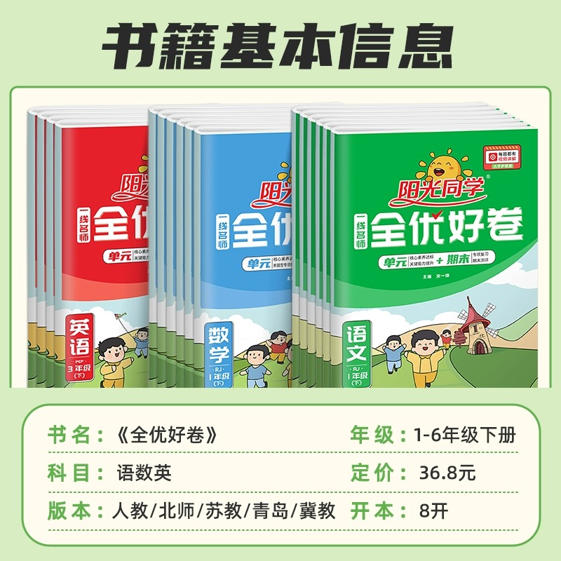 期中期末试卷测试卷RJ 北师同步达标卷单元 阳光同学全优好卷一年级上册二三四五六下册小学语文数学英语全套人教版 苏教版