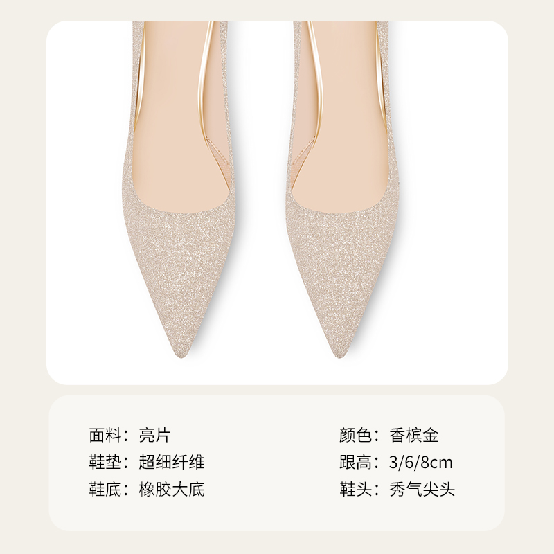 禾秀主婚纱两穿新娘高跟鞋 爱丽拉法式 春季 女2025新款 香槟色结婚鞋