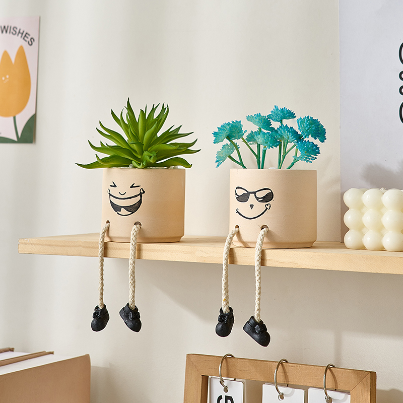 创意吊脚娃娃仿真盆栽摆件多肉仙人掌植物客厅卧室家居装 饰品摆设