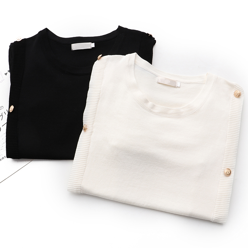 女装 50岁夏装 胖妈妈时尚 t恤上衣中年40 女 纯色针织短袖 中老年大码