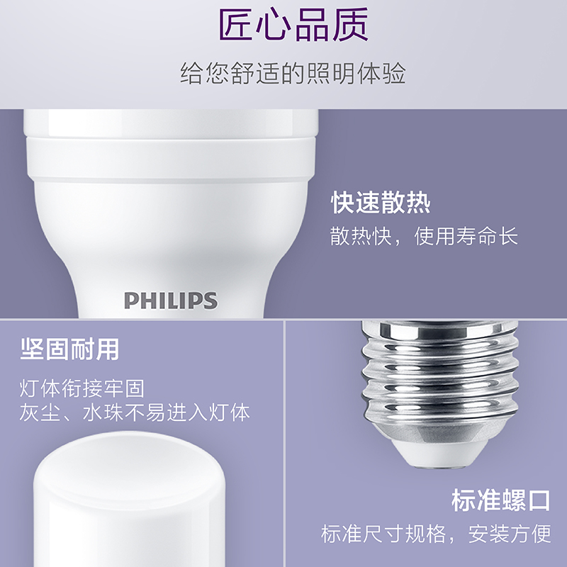 飞利浦led灯泡t型柱灯E27螺口家用高效节能超亮台灯玉米灯圆柱形