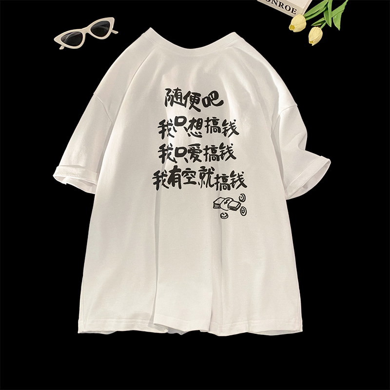 情侣上衣女 潮牌高街宽松百搭半截袖 我只想搞钱印花短袖 t恤男夏季