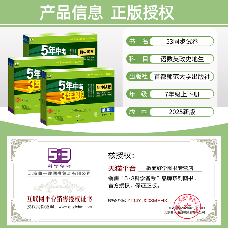 2025版 RJ上册语文数学英语历史生物地理初中同步必刷题初一下卷子5年3年 五年中考三年模拟试卷测试卷七年级下册测试卷全套人教版