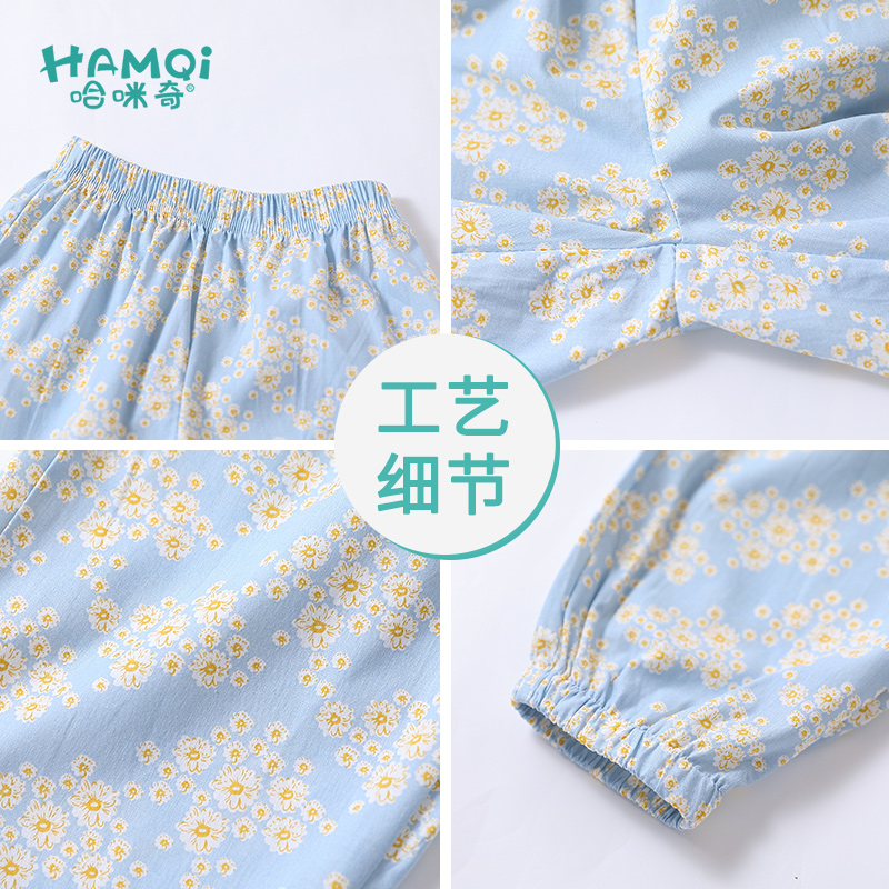 中大童九分长裤 女童纯棉防蚊裤 洋气碎花灯笼裤 2025儿童休闲裤 夏季