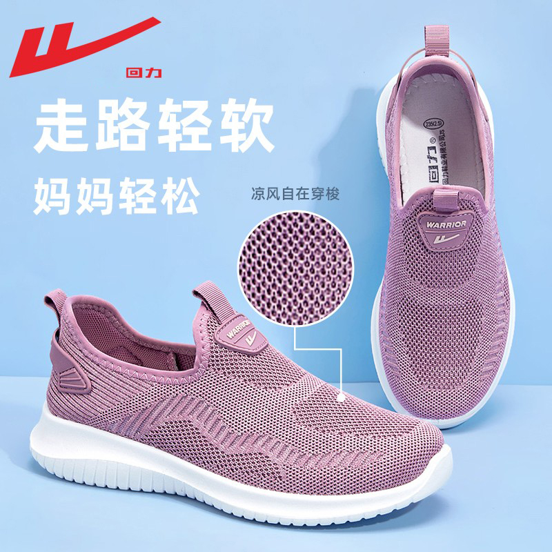 老人健步鞋 女夏季 子女软底舒适一脚蹬老北京布鞋 回力中老年妈妈鞋