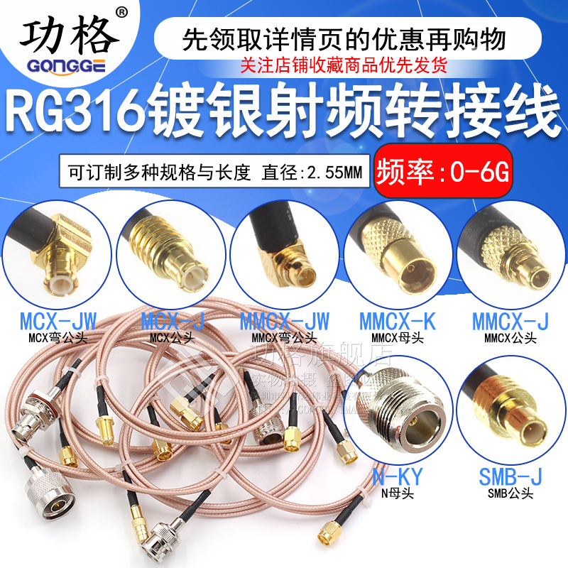 RF射频连接线 BNC转SMA公头转母头RG316延长线 N SMA转MMCX转接线