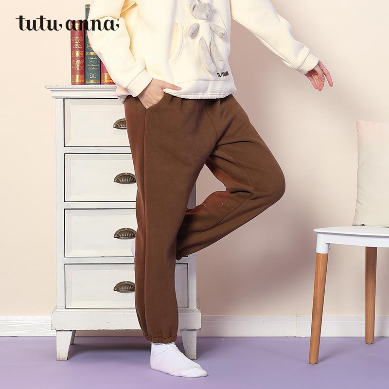 女长裤 tutuanna束脚裤 秋冬加厚加绒保暖直筒束脚纯色休闲卫裤