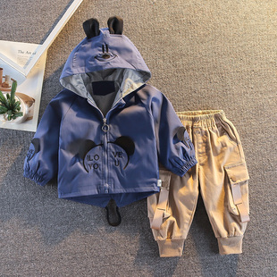 春秋衣服3潮1岁 外套一岁男童帅气套装 宝宝秋装 两件套洋气婴儿童装