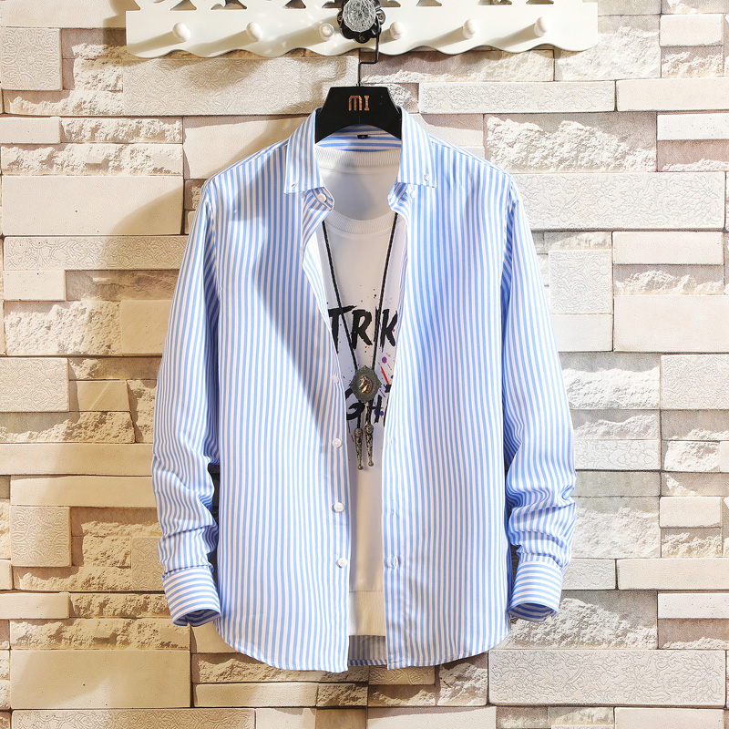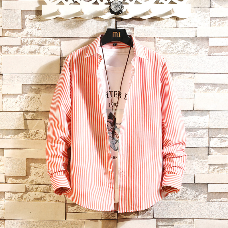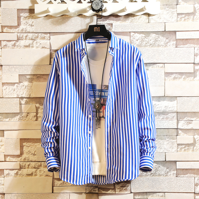 男士 潮流帅气条纹港风衬衣休闲外穿寸衫 长袖 韩版 外套男 衬衫 春秋季