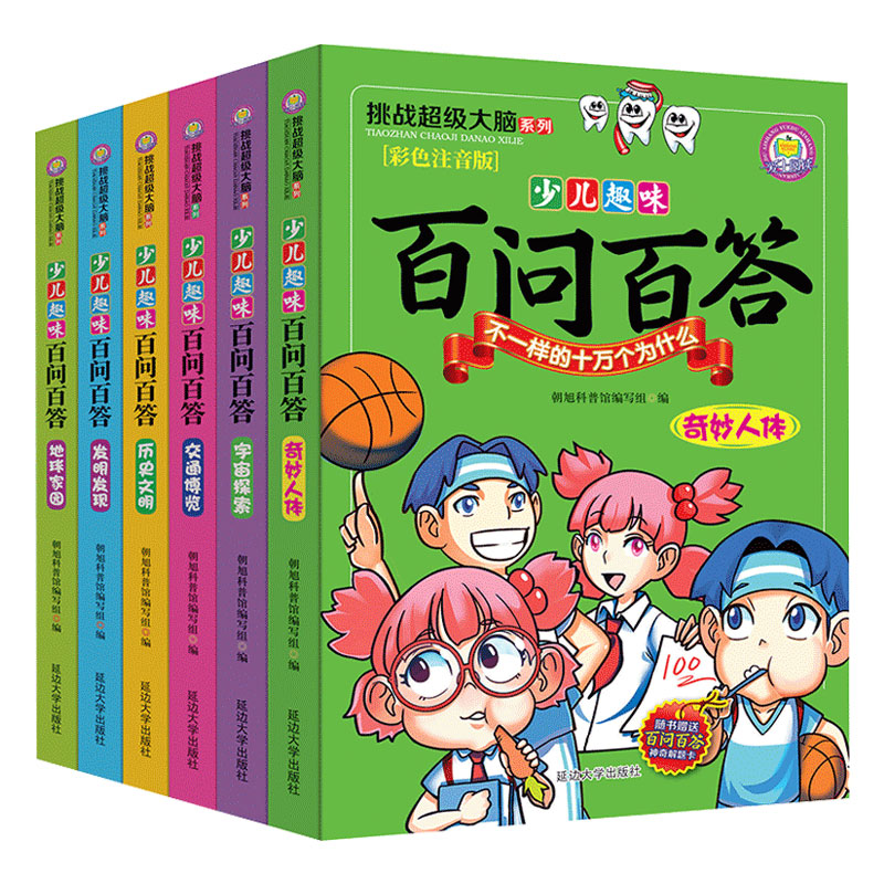 全6册挑战超级大脑少儿趣味百问百答正版 奇妙人体宇宙探索交通博览历史文明发明发现地球家园儿童文学百科全书畅销书籍 彩图注音版