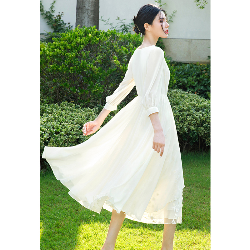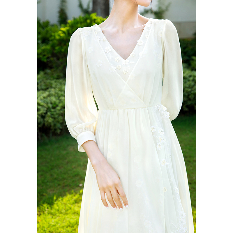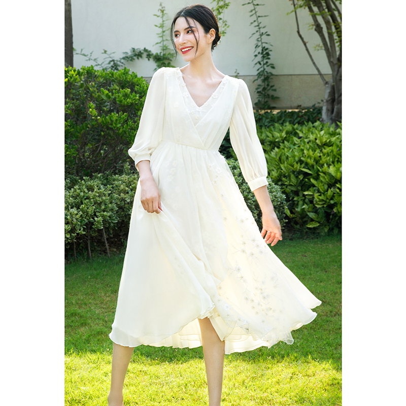法式 LULUALWAYS 新款 25春季 优雅浪漫温柔木耳边连衣裙 商场同款