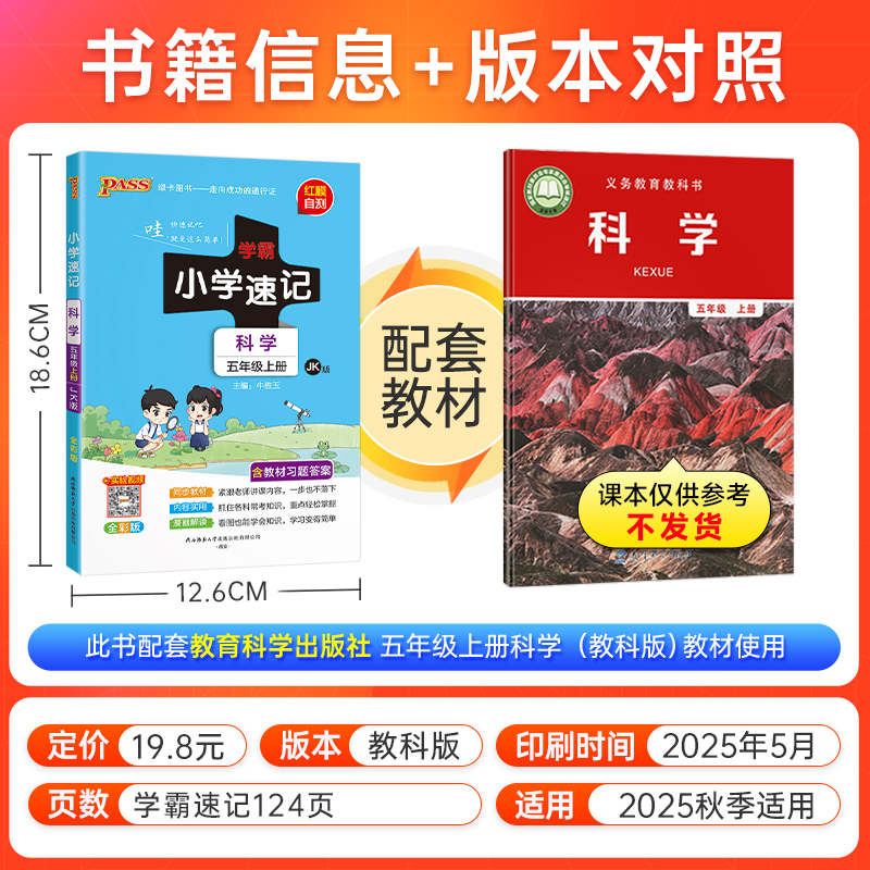 同步教材辅导资料知识点集结上小学5年级工具书便携版 2025新版 小学科学五年级上册学霸速记 课本辅导书pass绿卡图书 教科版