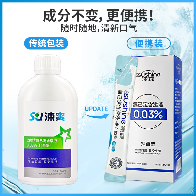 涑爽氯己定便携式 漱口水持久清洁抑菌舒爽清新口气正畸含漱液