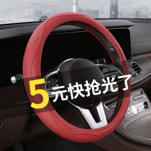 汽车方向盘套通用型四季 皮革把套防滑吸汗车用品小车大众套子 冬季