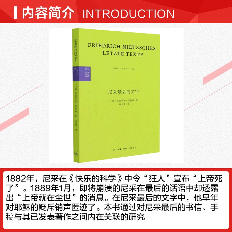 德 海因里希·德特林 生活·读书·新知三联书店 尼采最后 书籍 反基督者与被钉十字架者 正版 新华书店旗舰店文轩官网 文字