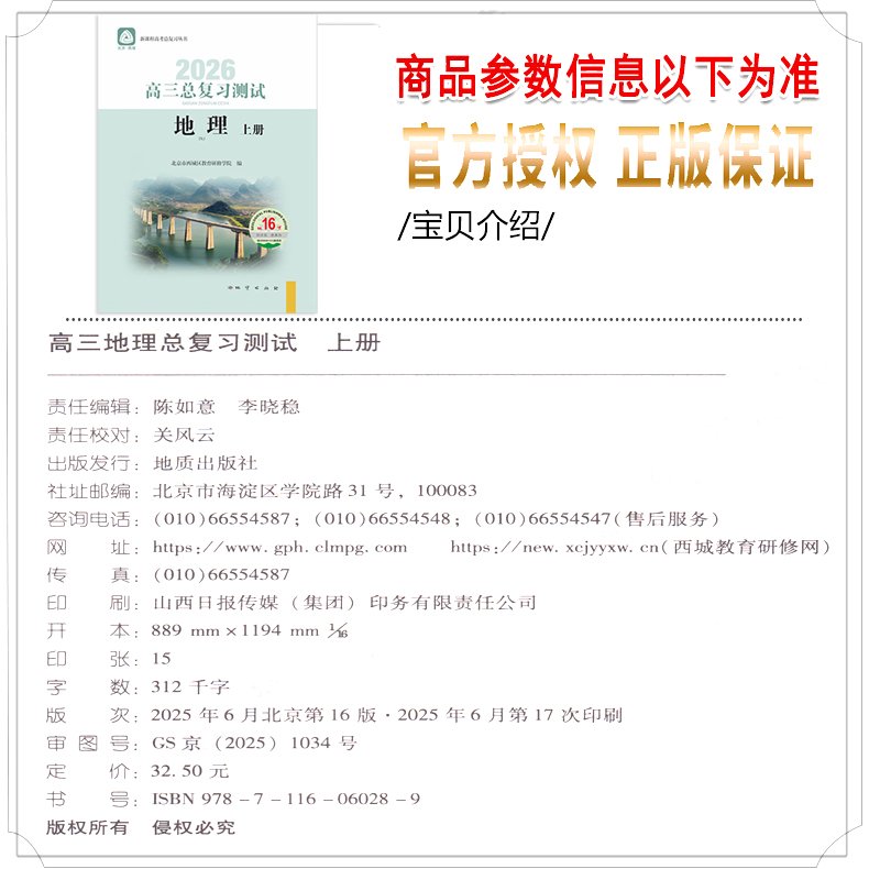 学探诊高中高考高3地理北京市西城教育研修学院 北京西城学习探究诊断 地质 2本套装 2026高三地理总复习指导与测试上册第16版