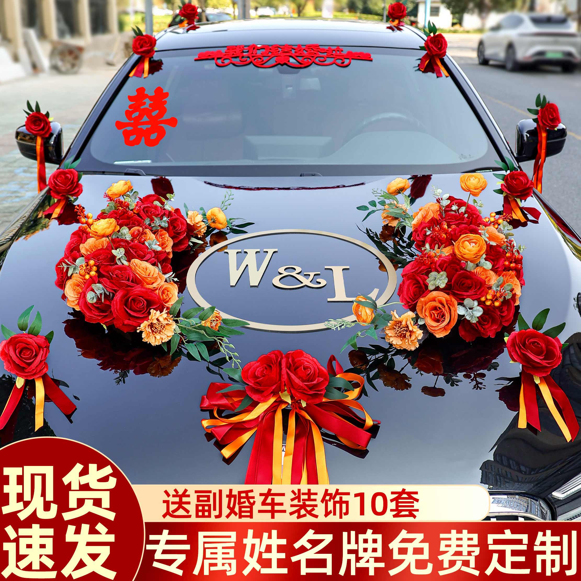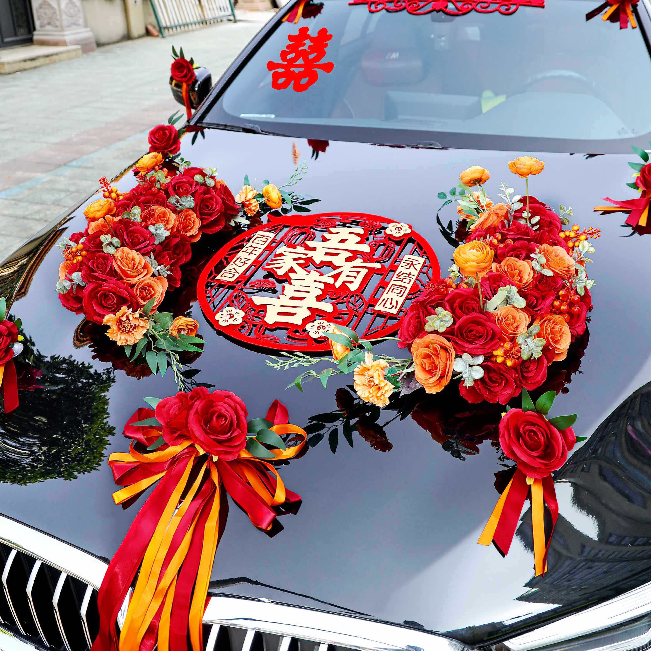 主婚车装 森系红橘花车结婚车队拉花布置头车花 饰车头花2025新款