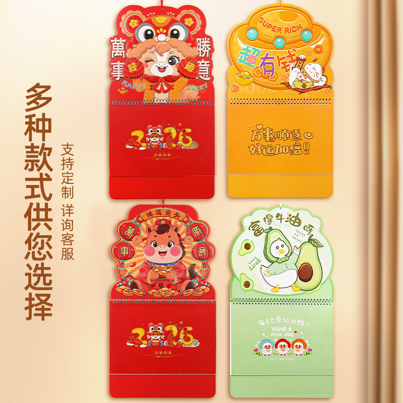 金箔福字挂历2026年新款 定制公司广告创意月历定做中国风福牌吊牌2025年家用挂墙黄历大号手撕日历马年挂历