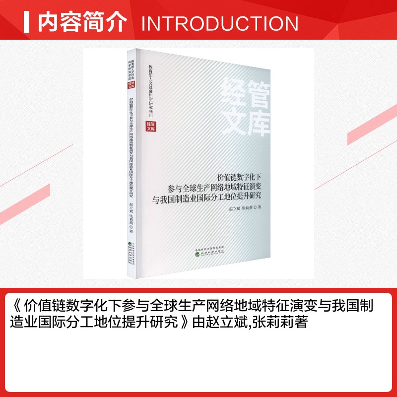 各部门经济经管 价值链数字化下参与全球生产网络地域特征演变与我国制造业国际分工地位提升研究 著 张莉莉 励志 赵立斌
