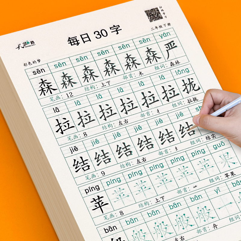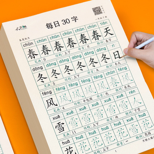 一年级二三年级小学生练字帖同步字帖每日30字字贴写字练字本上册下册人教版 专用控笔一日一练儿童楷书汉字描红本正楷楷体3年级