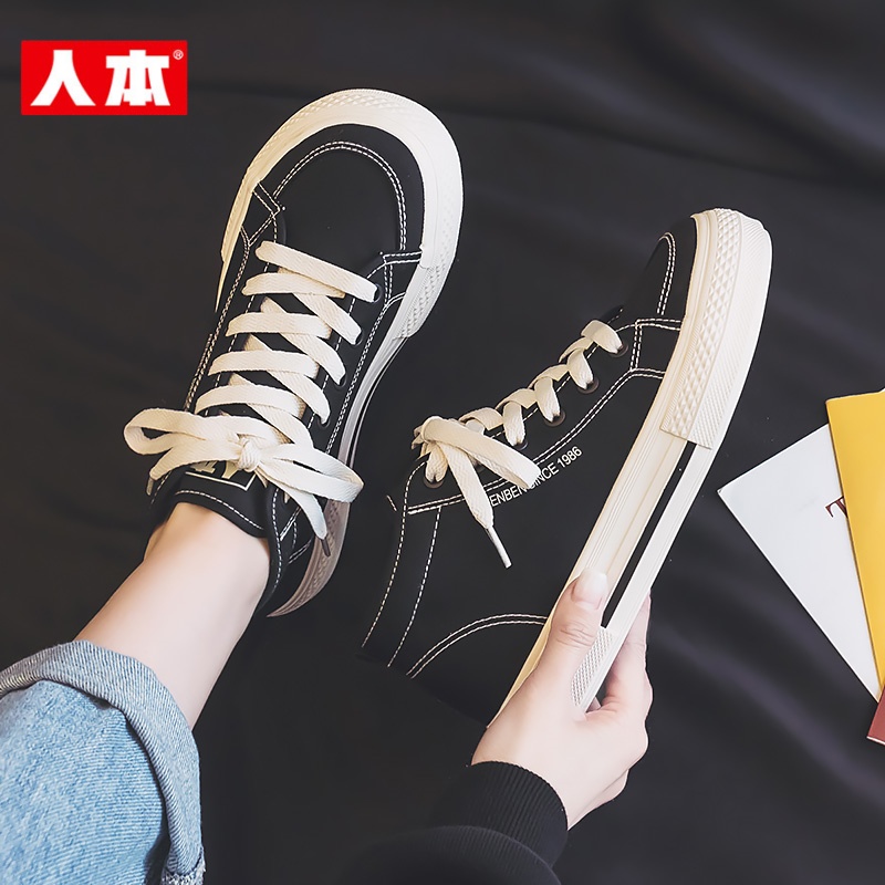 男女鞋 百搭休闲厚底小白鞋 四季 帆布鞋 子 清仓款 人本官方旗舰店正品