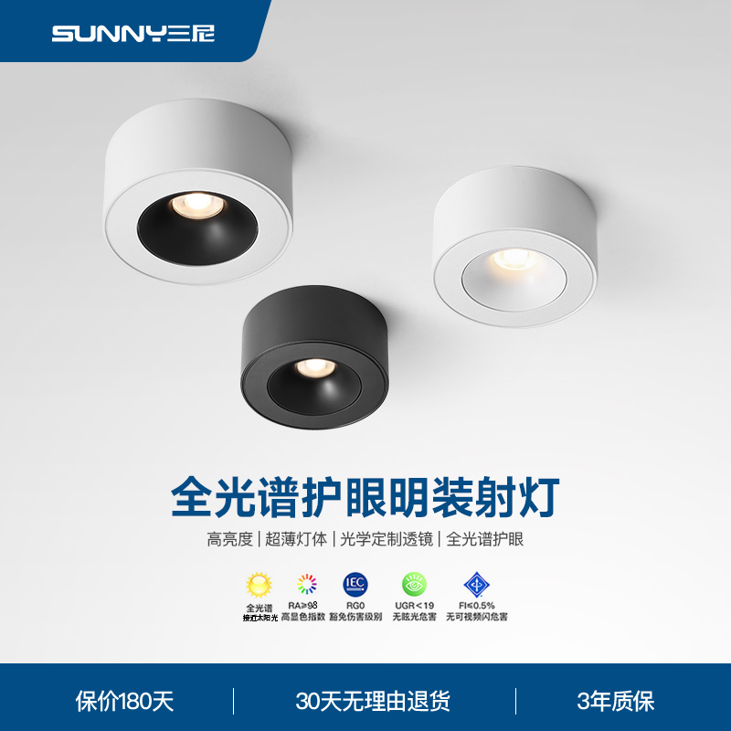 明装 射灯led无主灯家用客厅防眩射灯COB过道玄关超薄吸顶筒灯简约