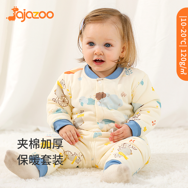 加厚冬装 婴儿套装 秋冬夹棉保暖衣服宝宝纯棉分体家居服儿童棉衣裤