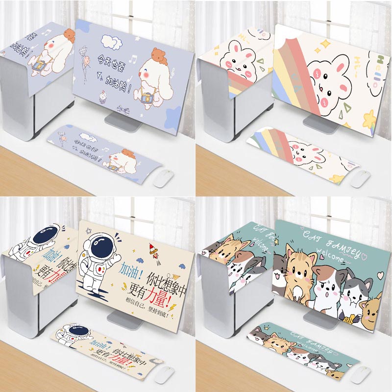 电脑防尘三件套主机键盘显示器盖布防尘保护罩27寸台式 盖巾遮尘套