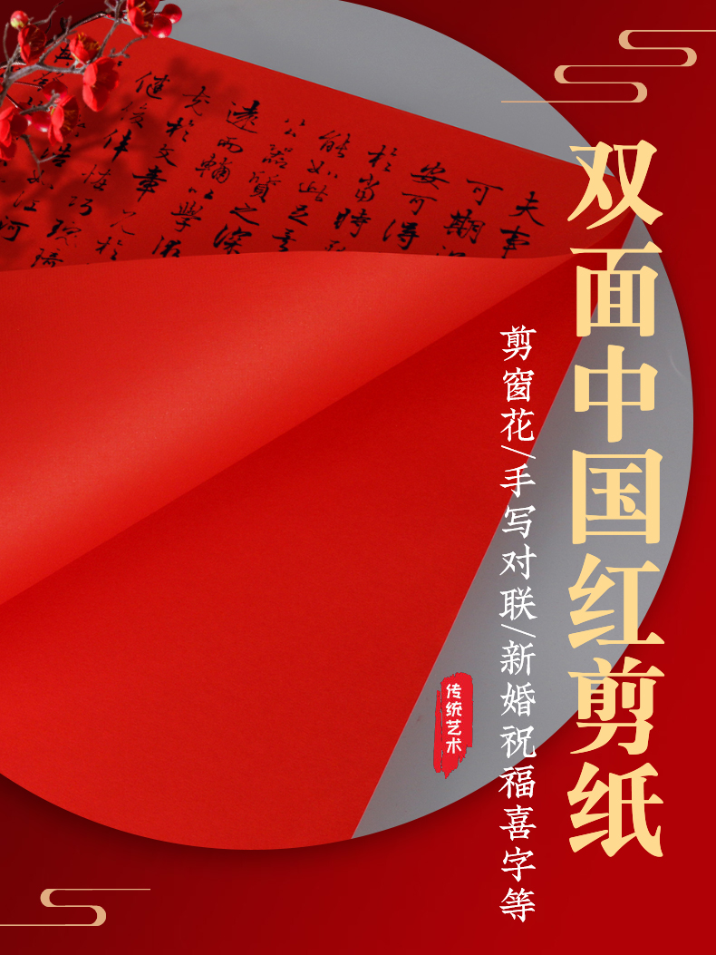 宣纸剪纸专用纸双面红宣纸大红色中国红窗花A3A4全开中小学生专用