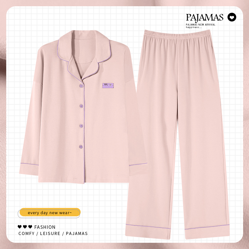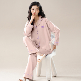 宽松休闲加大码 芬腾女士睡衣春秋纯棉长袖 新款 套装 全棉家居服 开衫