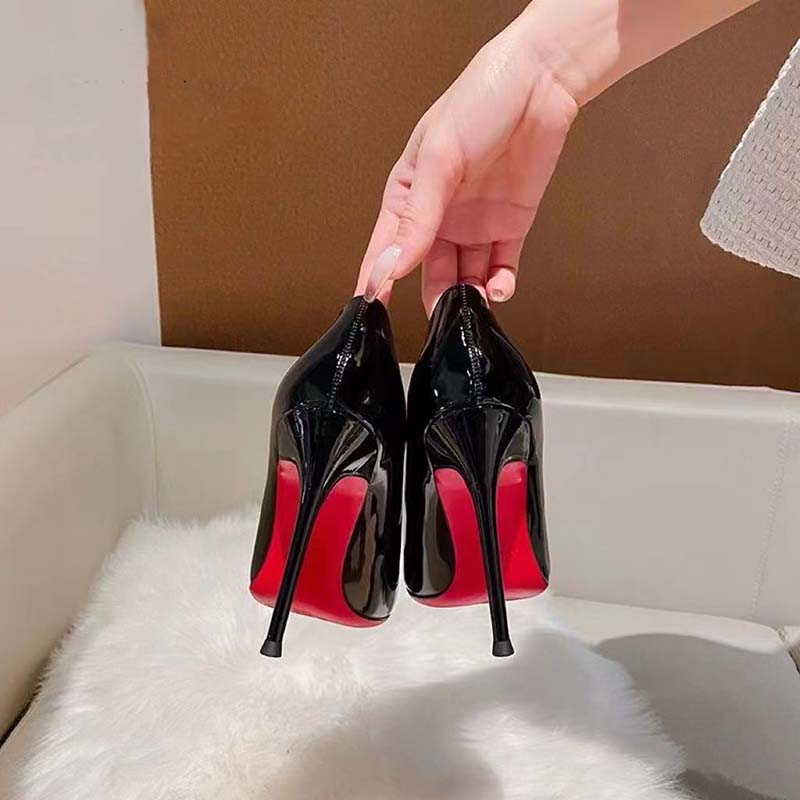 女 侧空红底裸色浅口气质单鞋 2025新款 细跟尖头漆皮名媛高跟鞋