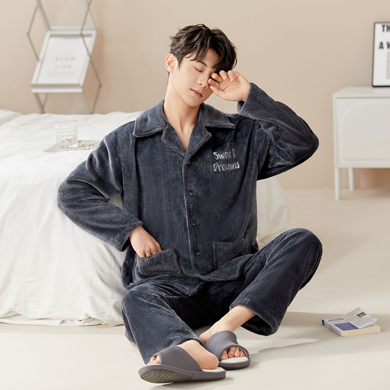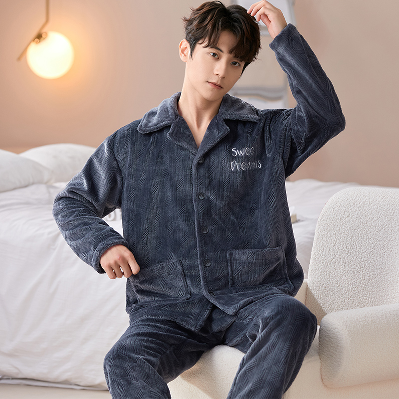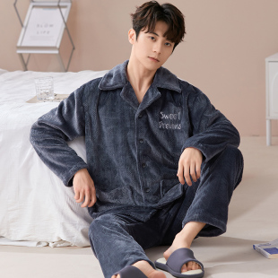 冬天套装 睡衣男士 珊瑚绒加绒加厚保暖法兰绒家居服男款 冬季 秋冬款