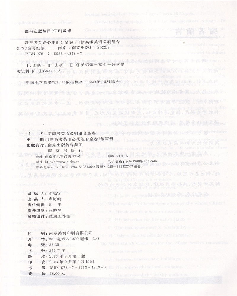 2024年新高考英语必刷组合金卷优化24套英语题题是好题卷卷是精卷含参考答案南京出版 社诚康文化高中真题模拟试卷精选汇编试题详解