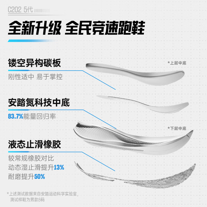 缓震训练鞋 男比赛竞速运动鞋 5代男专业碳板马拉松跑步鞋 安踏C202