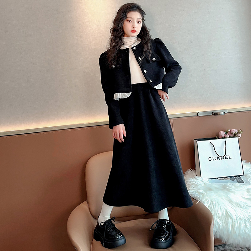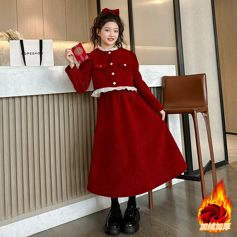 女童连衣裙秋冬款 儿童公主裙子加绒女大童小香风新年衣服 2025新款
