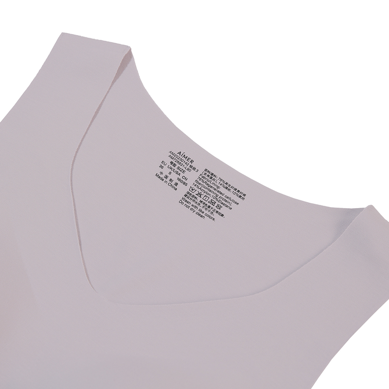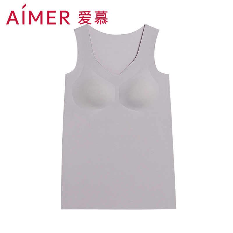 免定金 爱慕保暖打底衣女秋冬抗静电抗菌V领带胸垫背心 牛奶系