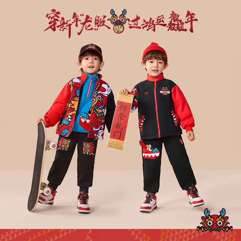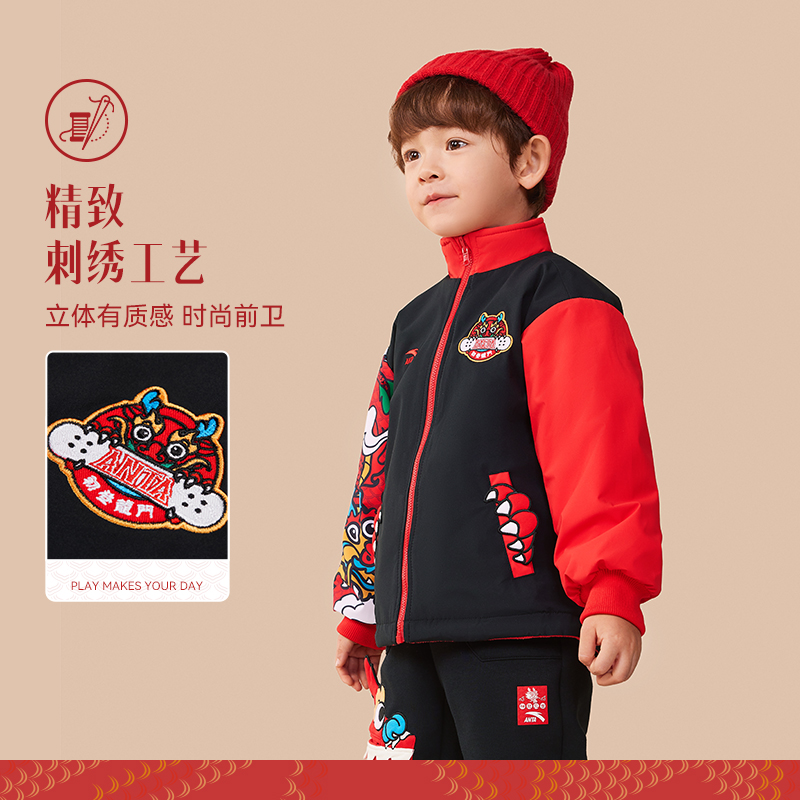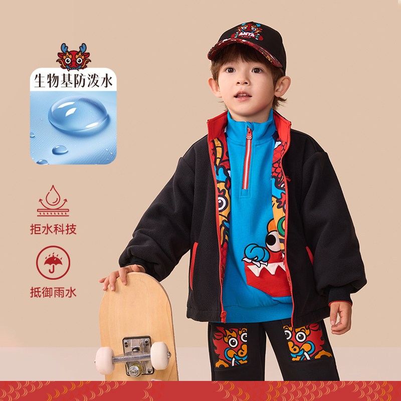 新年龙服 拜年服 安踏儿童男童双面穿外套宝宝防水2025春商场新款
