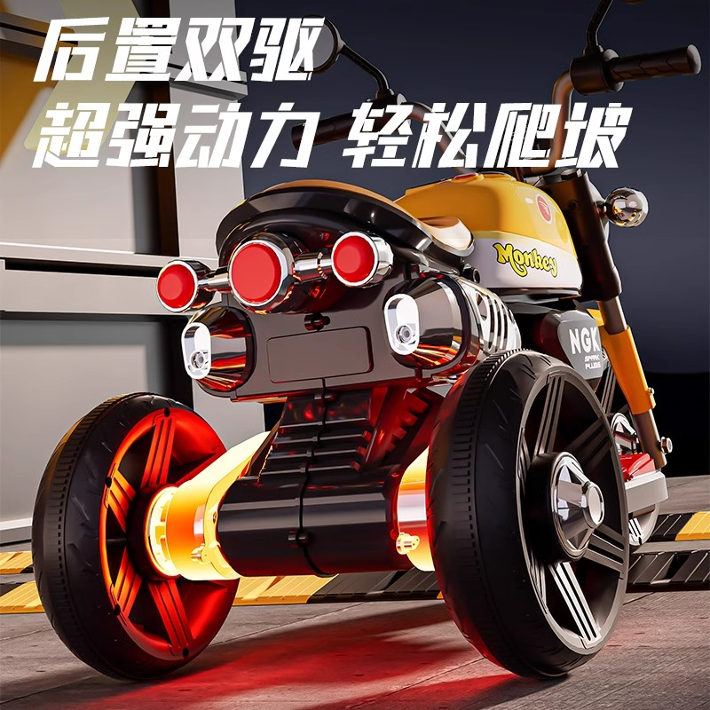 儿童电动摩托车三轮车男女孩宝宝玩具车小孩可坐人电瓶车遥控童车