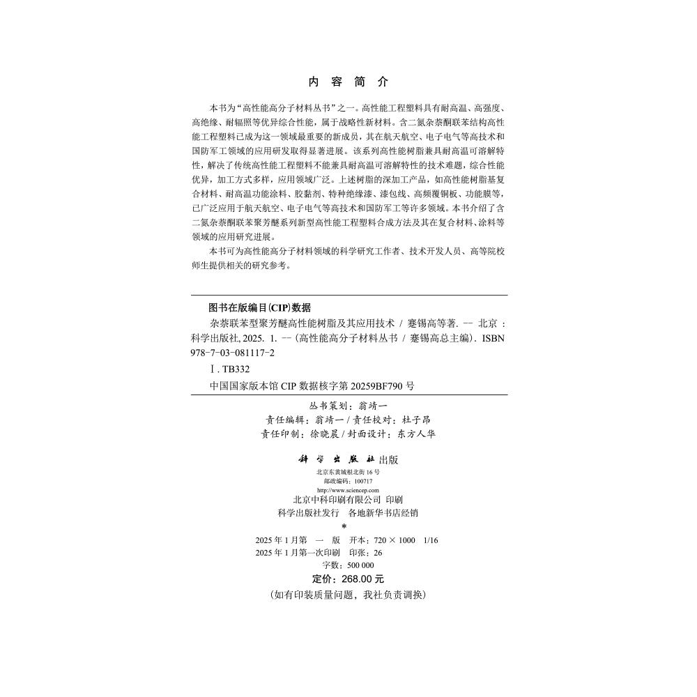 蹇锡高 等著 正版 现货正版 书籍 社社 杂萘联苯型聚芳醚高性能树脂及其应用技术 科学出版 高性能高分子丛书