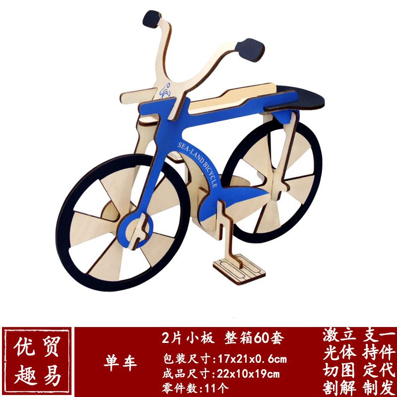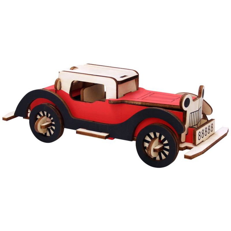 木制儿童DIY拼装 仿真老爷车模型木质3D立体拼图玩具学生手工材料