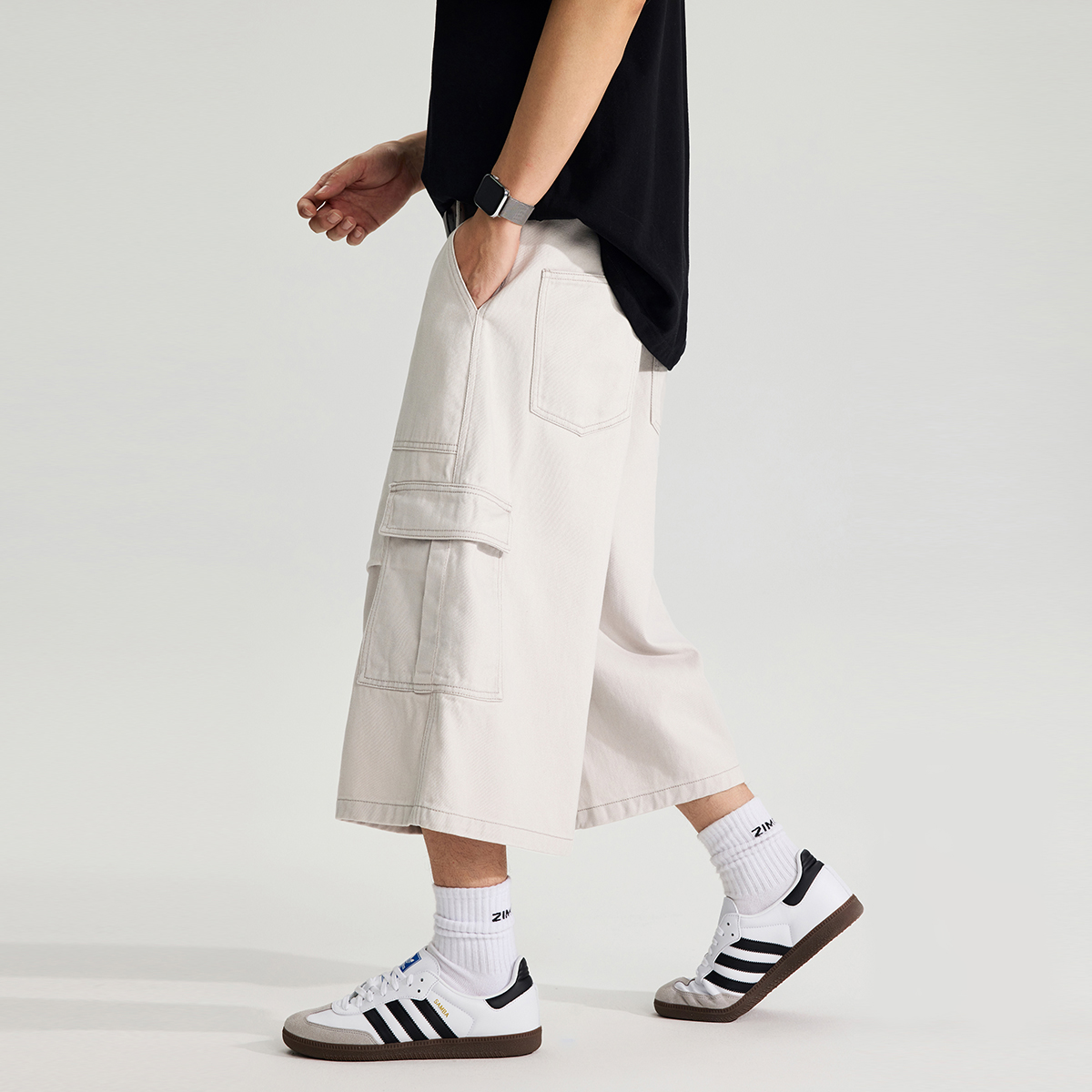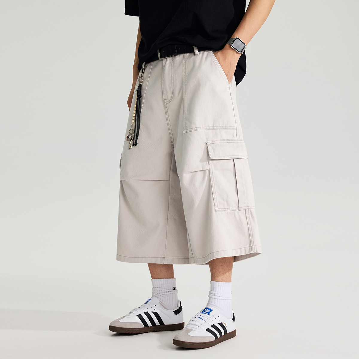 新款 纯棉纯色百搭透气多口袋休闲裤 美式 男士 子 潮牌七分裤 2025夏季