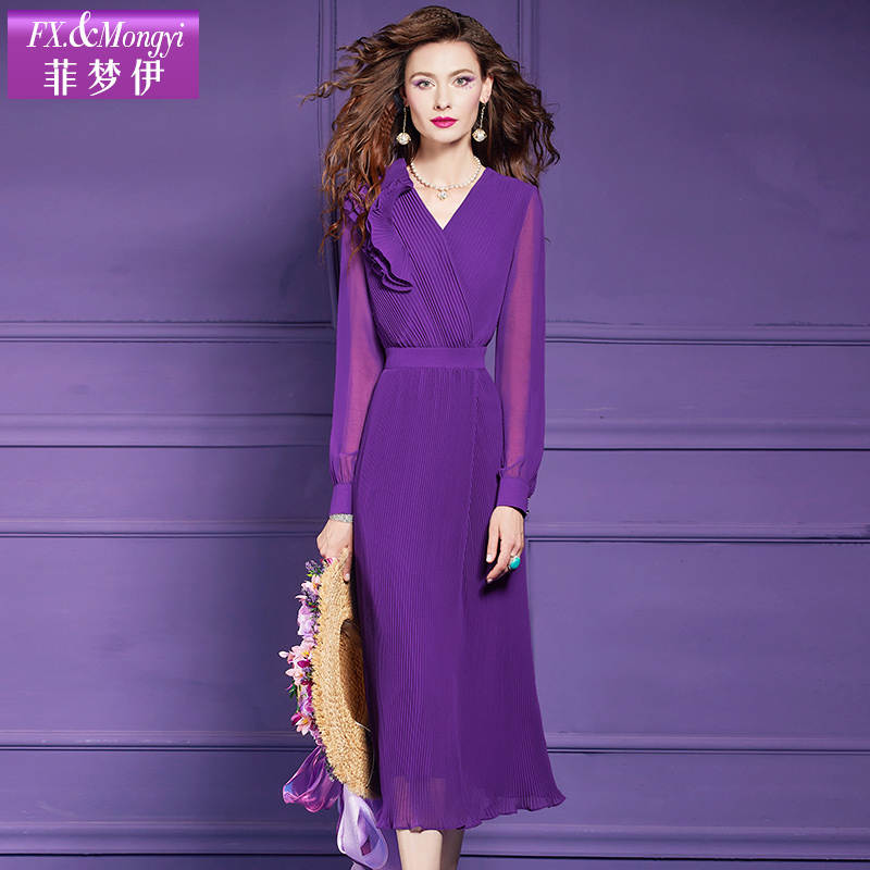 欧货连衣裙女中长款 乔万尼秋装 气质显瘦印花七分袖 修身 商场新款