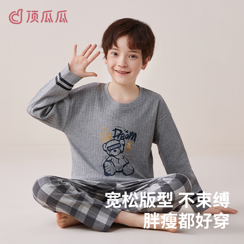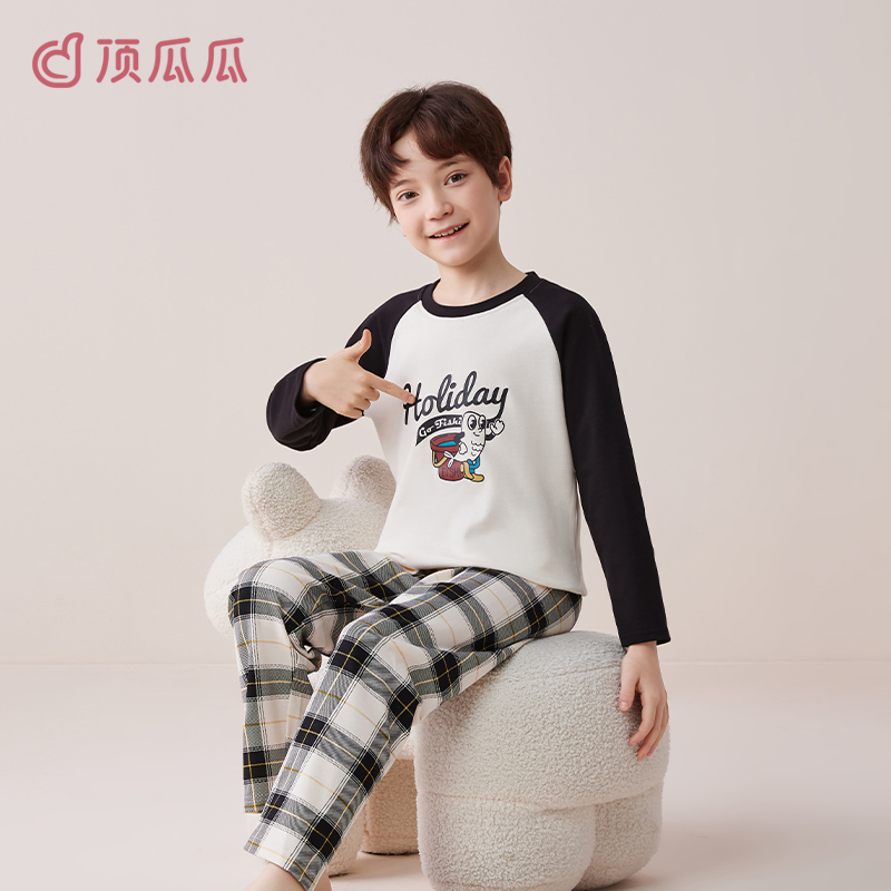 家居服2025新款 男孩中大童春秋款 套装 顶瓜瓜男童睡衣儿童纯棉长袖