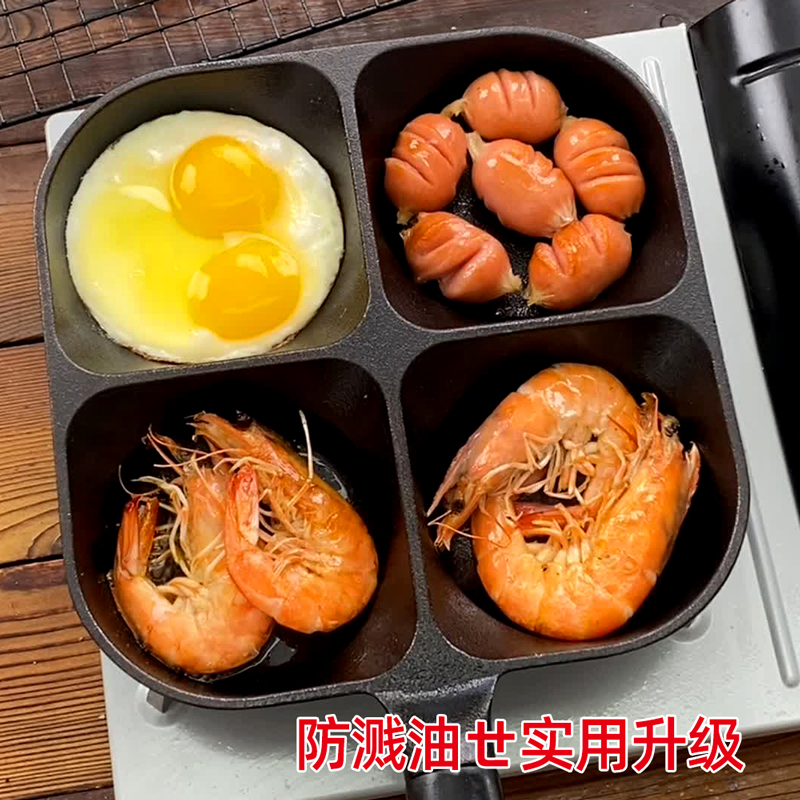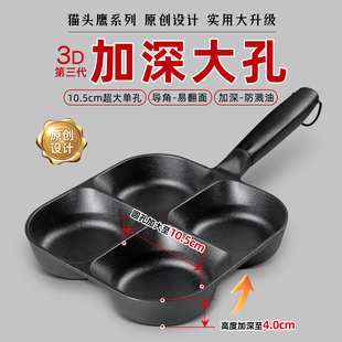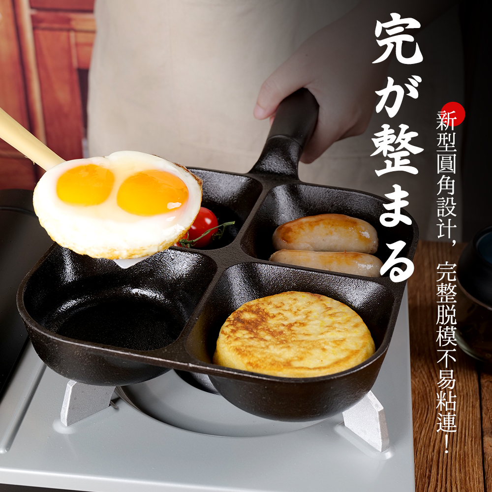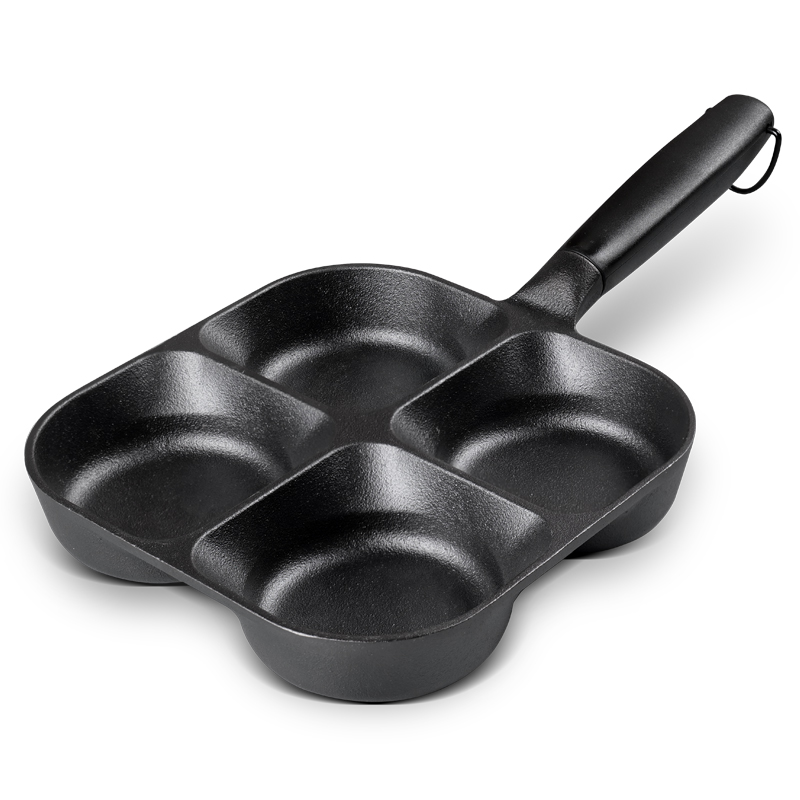 九铸加深四孔锅铸铁锅蛋饺神器煎蛋不粘锅无涂层鸡蛋汉堡煎锅家用
