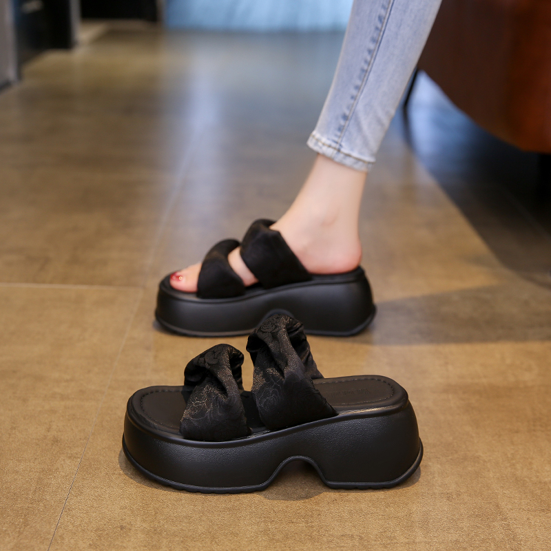 沙滩一字拖 增高高跟凉鞋 小个子厚底凉拖鞋 女夏外穿配裙子2025新款
