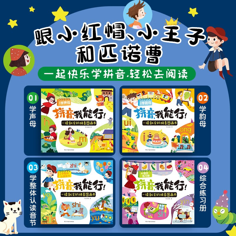 6岁儿童启蒙早教绘本故事书幼小衔接早教小学汉语拼音认字声母韵母拼读训练习册教材书一年级看拼音写词语 拼音我能行全套4册